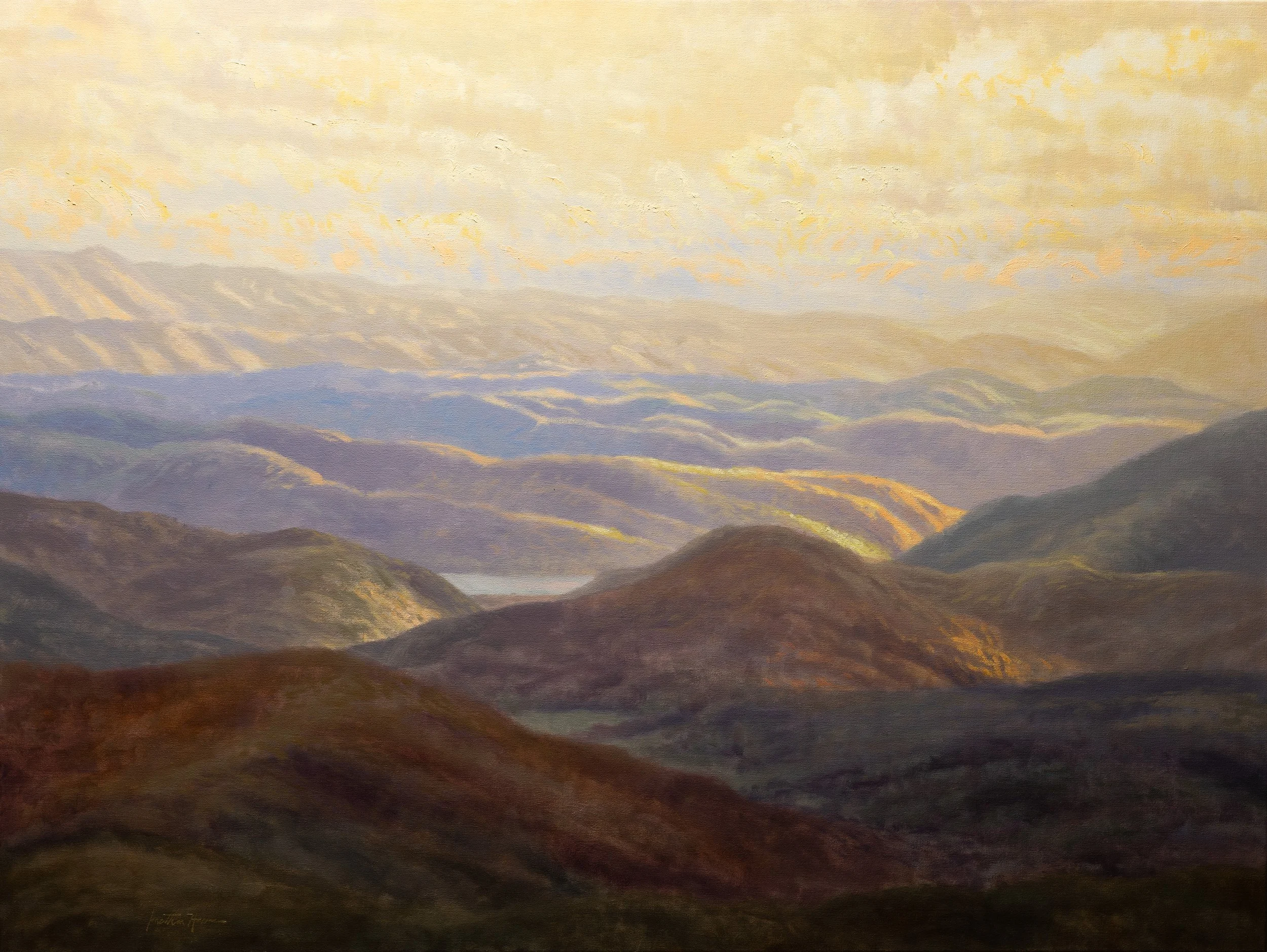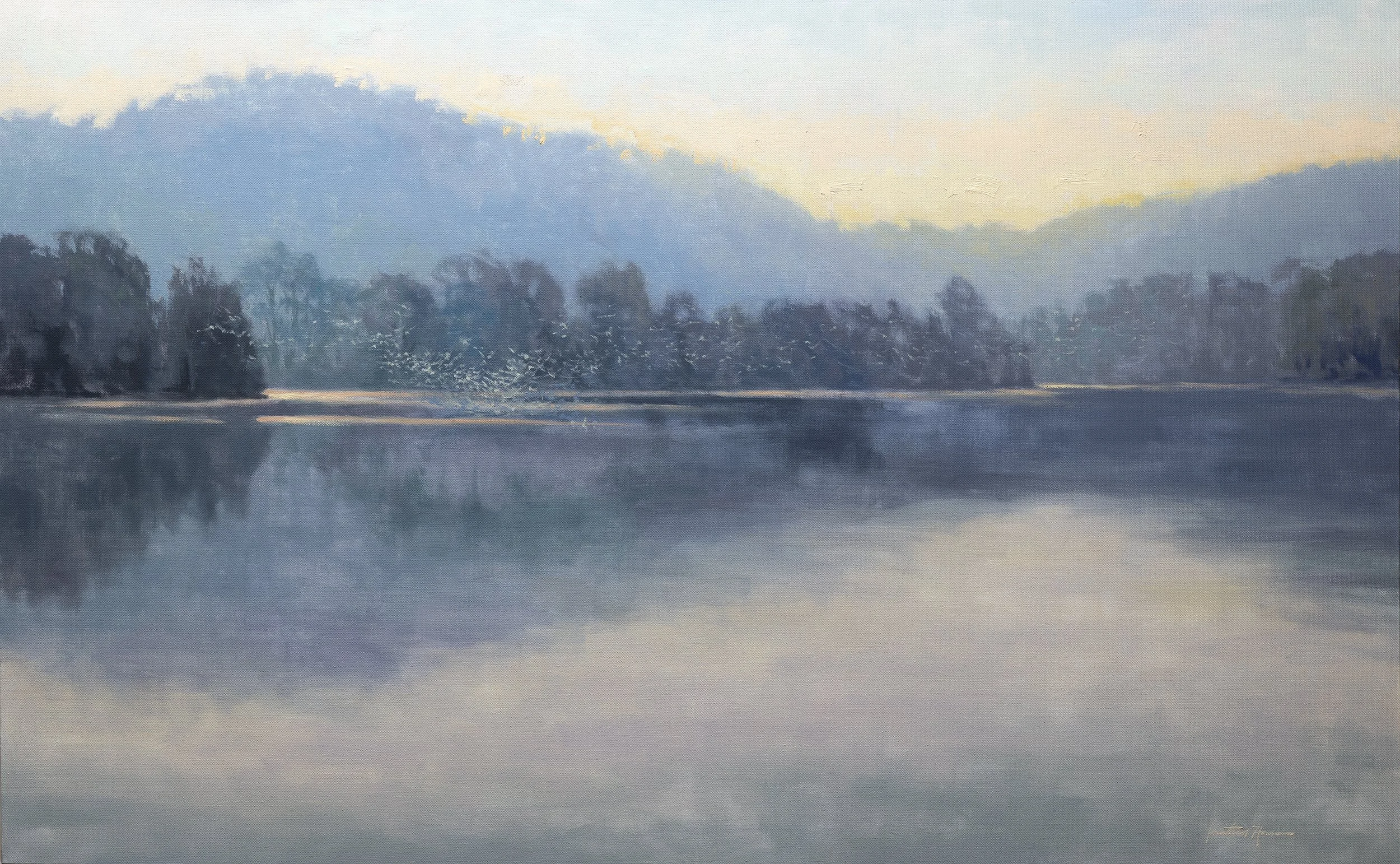This 36x36 landscape carries that life with it. Framed with a handcrafted stained poplar floater frame that compliments the painting.