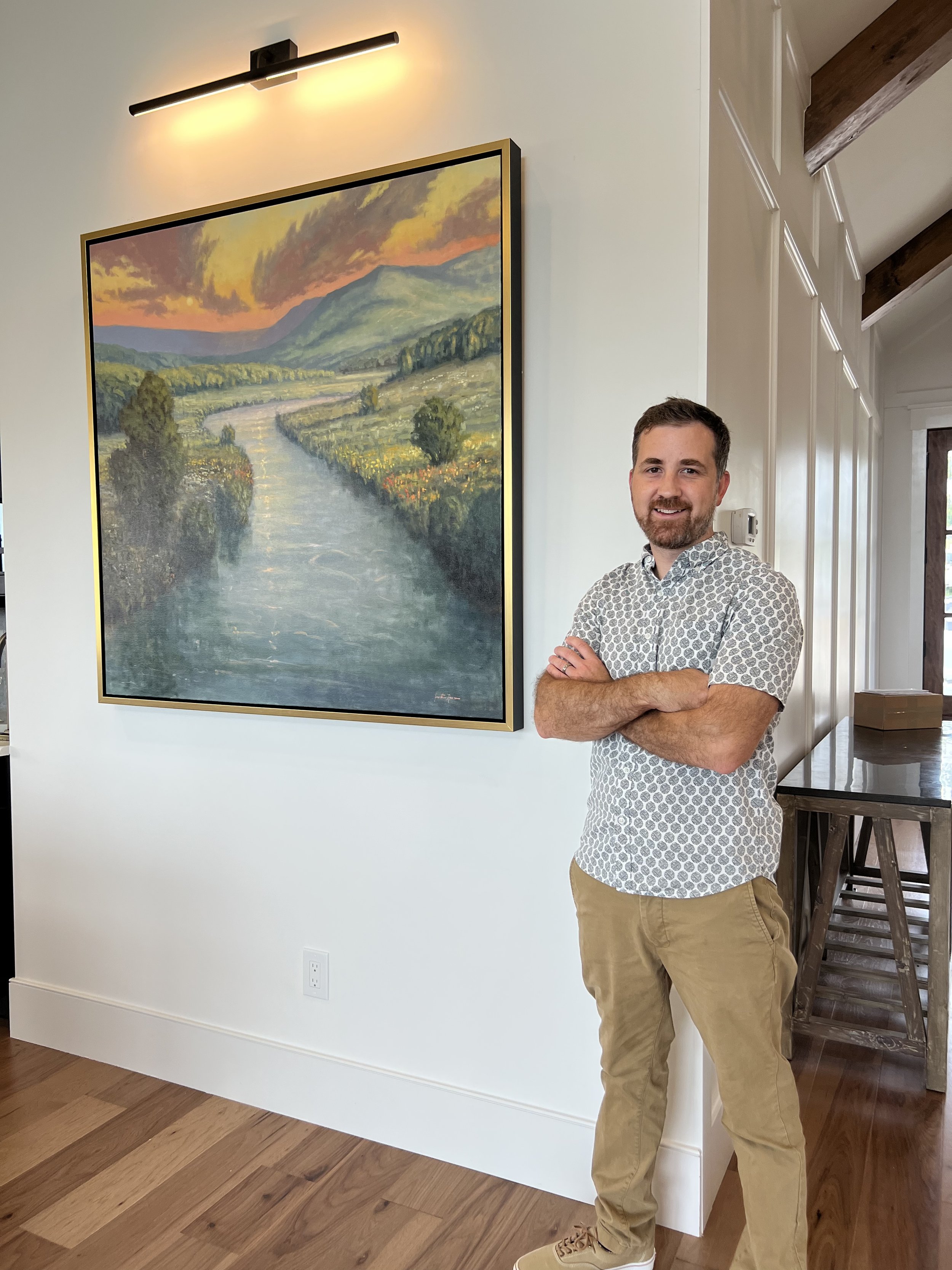 Initial Consultation: First I meet with you most of the time in person if possible, or over the phone and email for out of state commissions. During this first consultation I find out what you are looking for and where the painting will hang. I usually will go over a selection of previous paintings to see what aesthetic you are drawn to and what color scheme you enjoy in previous works. And we discuss what subject matter you would like in the painting. Then we determine the size of painting that you are wanting. Once a size and subject matter is determined, I give a quote for the painting and a 50% deposit is made.